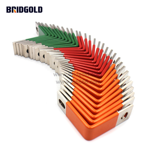 动力电池的快速发展离不开里面重要的组件之一新能源连接排,它由多片防电晕扁平T2紫铜薄铜片叠加两端焊压而成,绝缘层有热缩管、喷塑、浸塑三种。因易安装、耐弯折,广泛应用于新能源动力汽车锂电池组连接、充电桩等新能源领域。